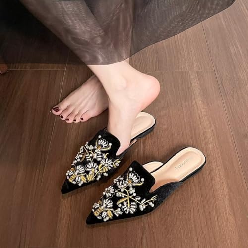 LUXINYU Women's Chinese Floral Embroidery Pointed-Toe Flats Comfortable Suede Casual Mules House Slippers Shoes 7