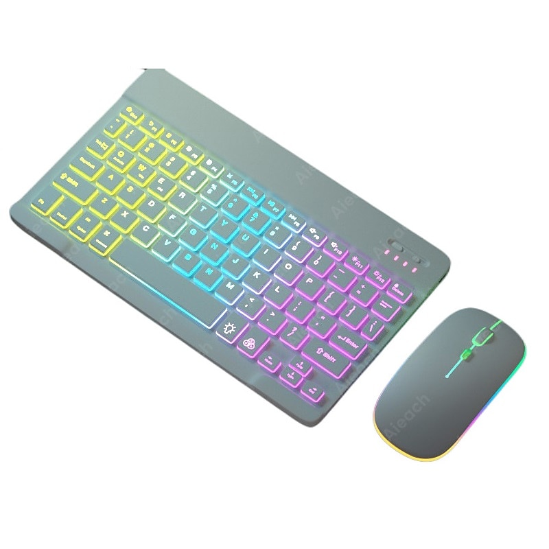 Keyboard and Mouse Combo For Tablet Android iOS Windows, Wireless Slim Mouse Keyboard Combo, Bluetooth Rainbow Backlit Keyboard
