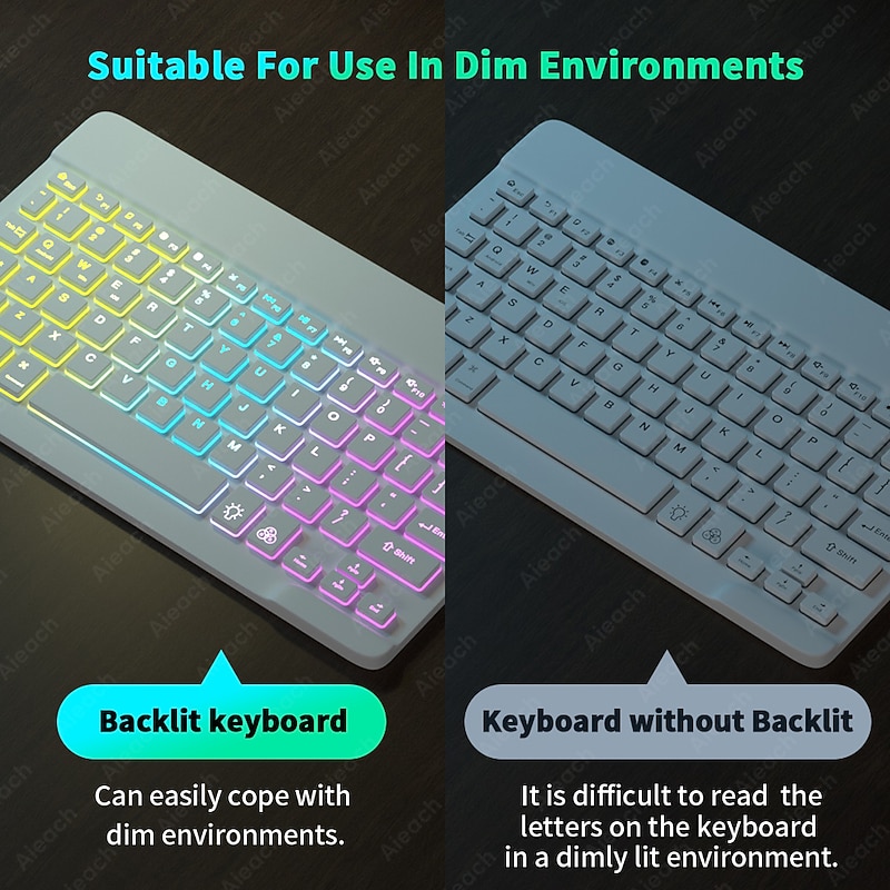More information about Keyboard and Mouse Combo For Tablet Android iOS Windows, Wireless Slim Mouse Keyboard Combo, Bluetooth Rainbow Backlit Keyboard