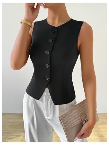 More information about MakeMeChic Women's Sleeveless Single Breasted Blazer Round Neck Asymmetrical Hem Blazer Vest