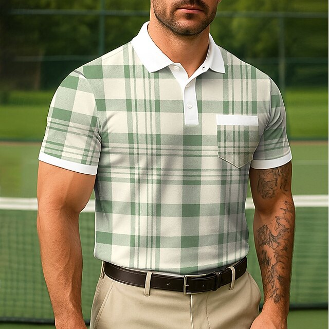 More information about Men's Color Block Polo Short Sleeve Turndown Business Leisure Sports & Outdoor Athleisure Casual Daily Pocket Buttons Summer Robin's Egg Blue Green