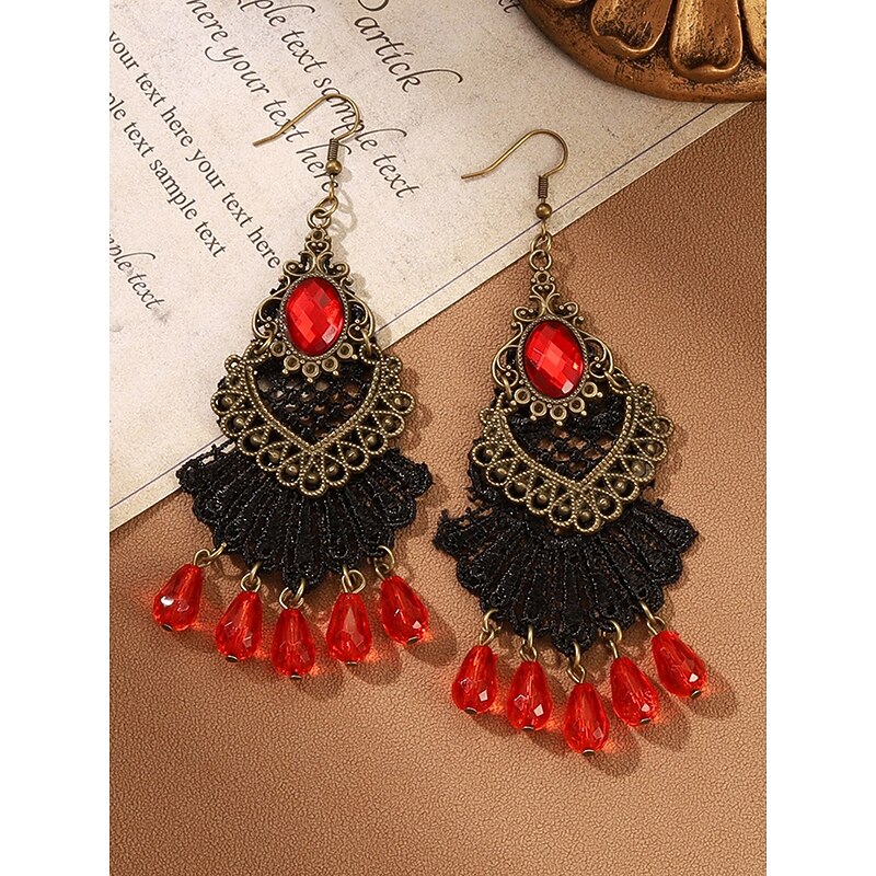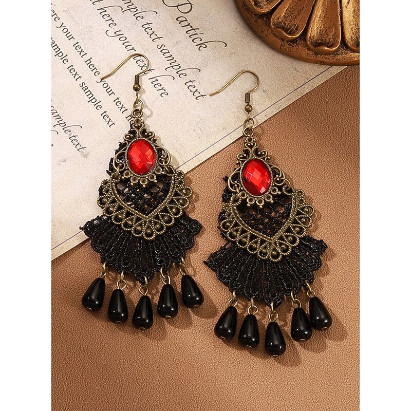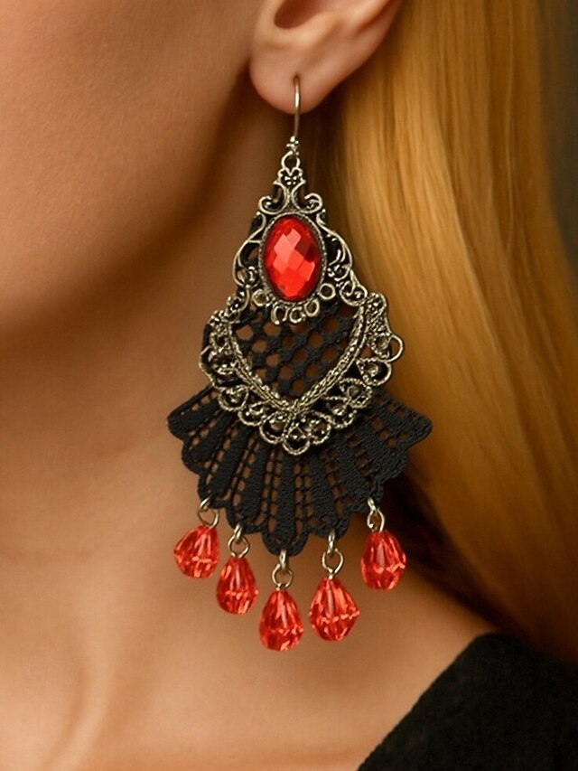 $9.99 - Women's Gothic Vintage Alloy Drop Earrings with Black Stone and Red Beads, Halloween Party Costume Jewelry for Retro Punk Style 2025. Shop for cheap Halloween Accessories online? Buy at lightinthebox.com on sale today!