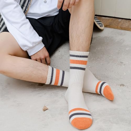 Womens Striped Crew Socks,Sweat-absorption Cozy,Gym Running Hiking,Casual Classic Sock Cotton Size5.5-10.5 5