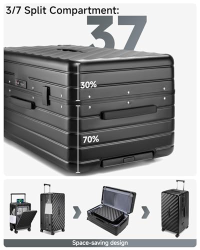 Somago Luggage Sets 2pcs, 22x14x9 Front Compartment Aluminum Framed PC Hardside and 30 Inch Trunk Luggage with Spinner Wheels, Black 7