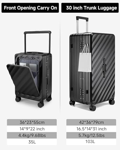More information about Somago Luggage Sets 2pcs, 22x14x9 Front Compartment Aluminum Framed PC Hardside and 30 Inch Trunk Luggage with Spinner Wheels, Black