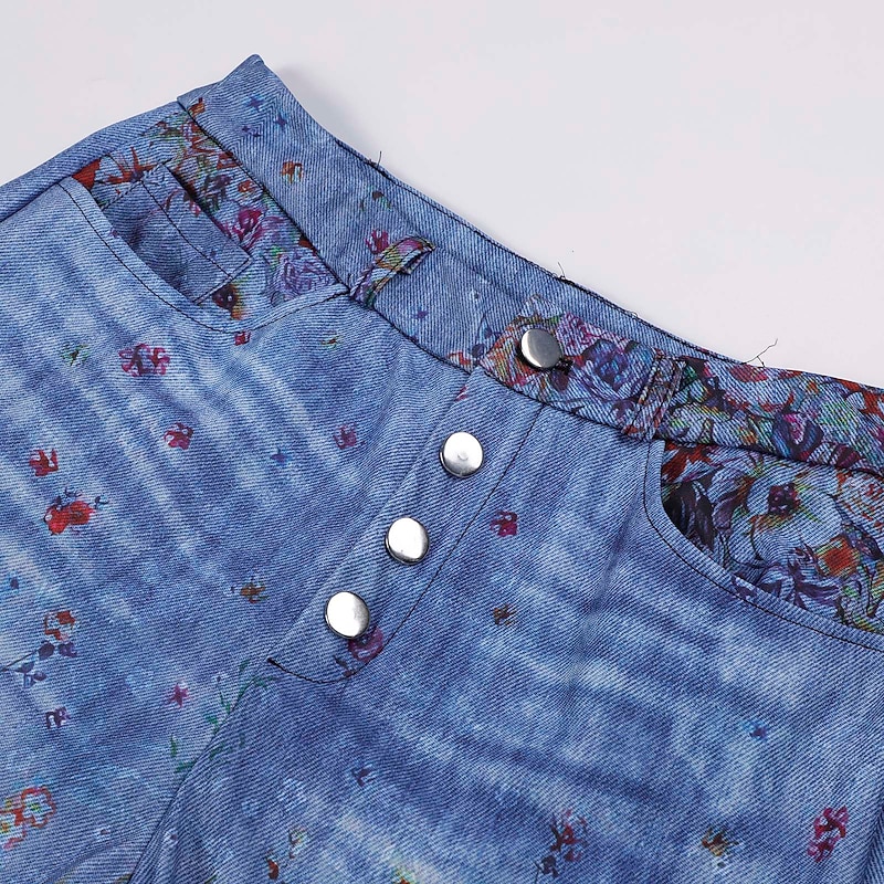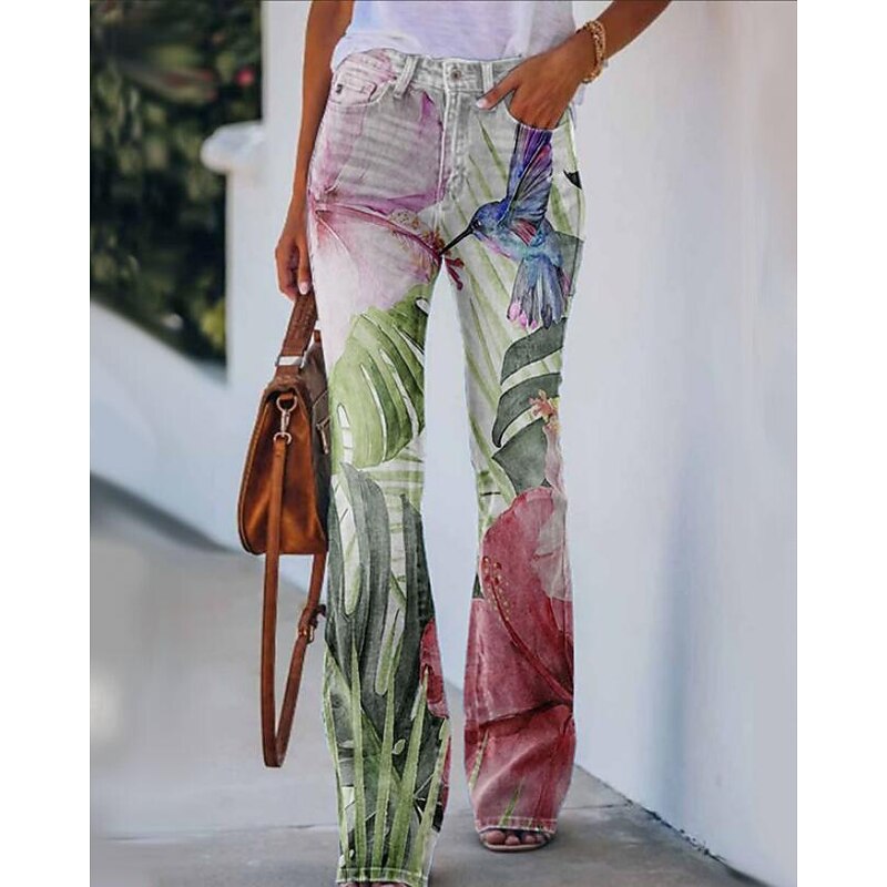Women's Jeans Bootcut Faux Denim Print High Waist Full Length 1 Fall & Winter 12