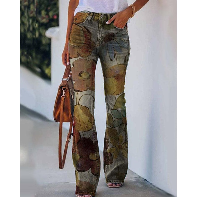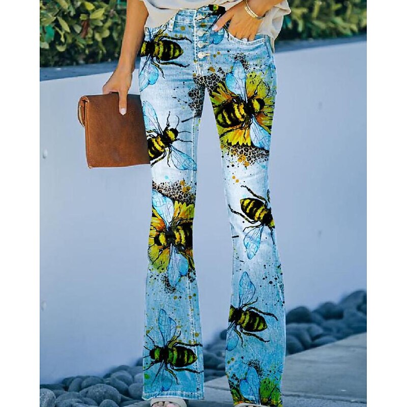 Women's Jeans Bootcut Faux Denim Print High Waist Full Length 1 Fall & Winter 25