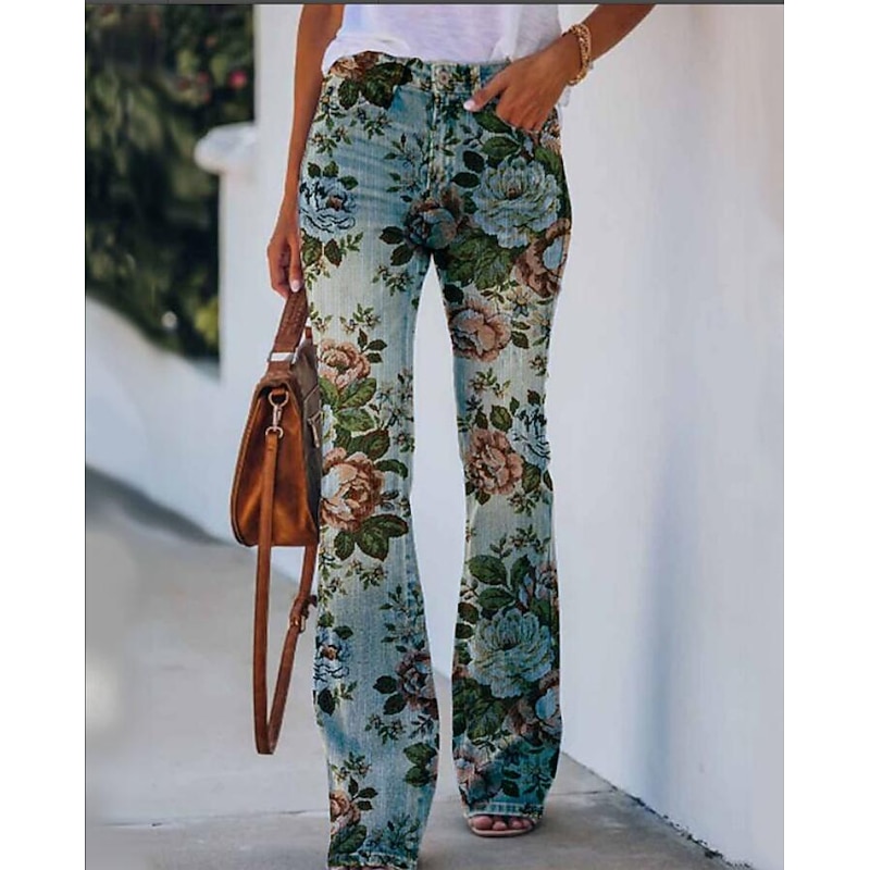 Women's Jeans Bootcut Faux Denim Print High Waist Full Length 1 Fall & Winter 13