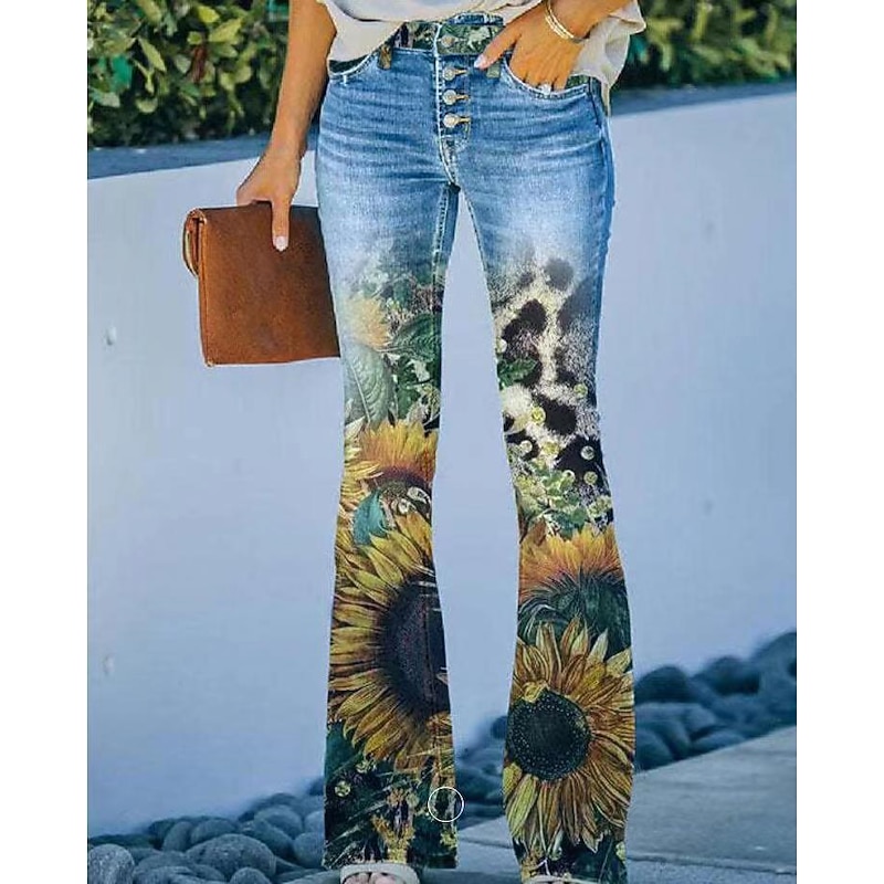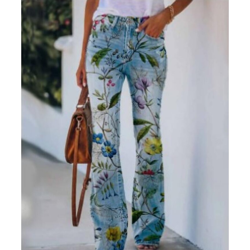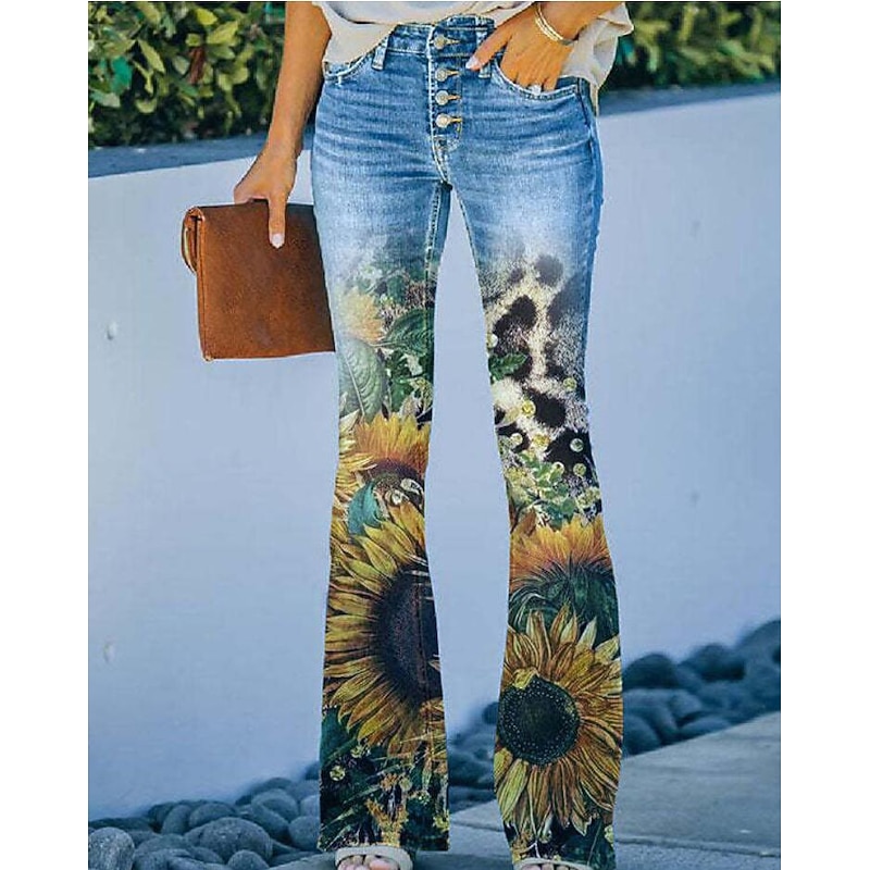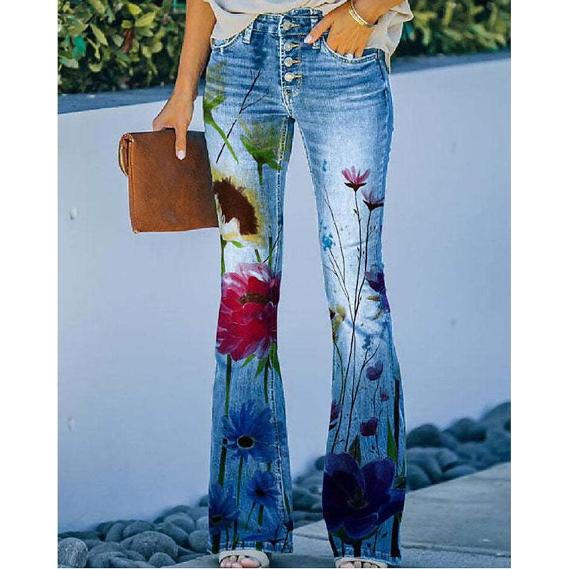 Women's Jeans Bootcut Faux Denim Print High Waist Full Length 1 Fall & Winter 7