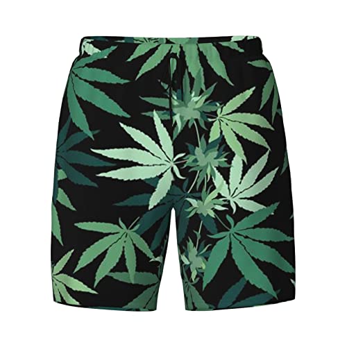 HOT ! Weed Marijuana Leaf Men's Double Layer Swim Trunks Beach Shorts with Compression Liner Swimwear