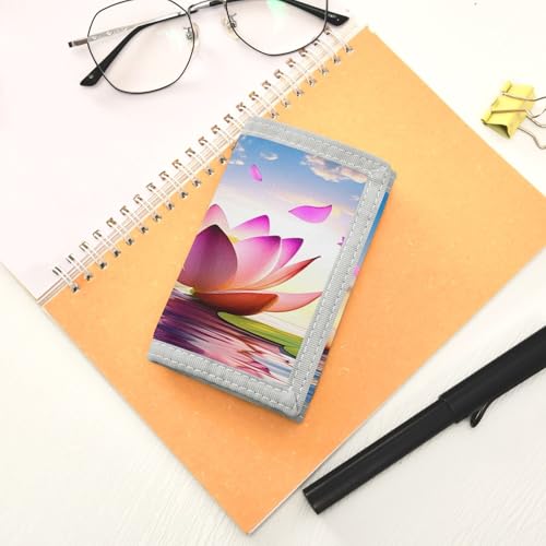 HOT ! Lotus Stones Water Surface Kids Wallet for Boys Girls Trifold Sport Outdoor Wallets for Youth Teen Children Wallet with Zippered Coin Pockets Card Holders Novelty Wallets with Magic Sticker