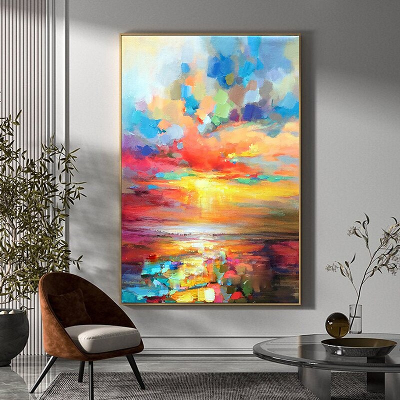 More information about Handmade Oil Painting CanvasWall Art DecorationAbstract Knife Painting Landscape Yellow For Home Decor Stretched Frame Hanging Painting