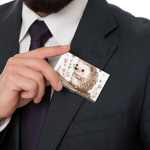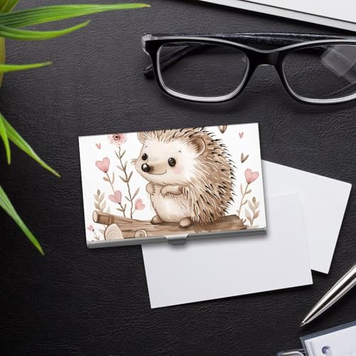 HOT ! Slim Metal Business Card Holder - Hedgehog Sitting on Top Aluminum Alloy Card Case with Buckle Closure, Holds 20 Cards & Cash, Professional Credit Card Size ID Holder for Men Women Gift