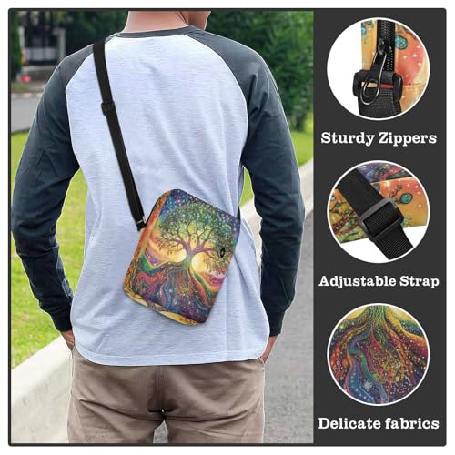 mens messenger bag crossbody mens shoulder bag Womens Casual Purses Adjustable Strap for School School- The Tree Of Life Colorful 5