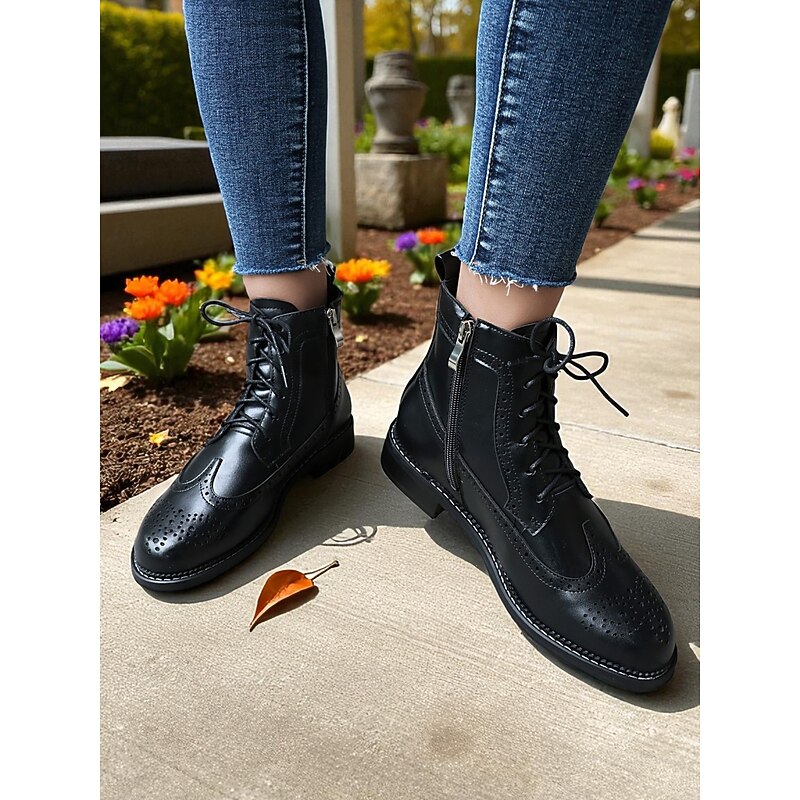 Women's Vintage Oxford Lace-Up Ankle Boots – Brogue Faux Leather Flat Booties for Fall Outfits, Everyday Wear & Retro-Inspired Looks 1