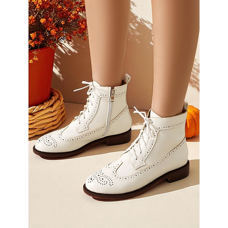 Women's Vintage Oxford Lace-Up Ankle Boots – Brogue Faux Leather Flat Booties for Fall Outfits, Everyday Wear & Retro-Inspired Looks 12