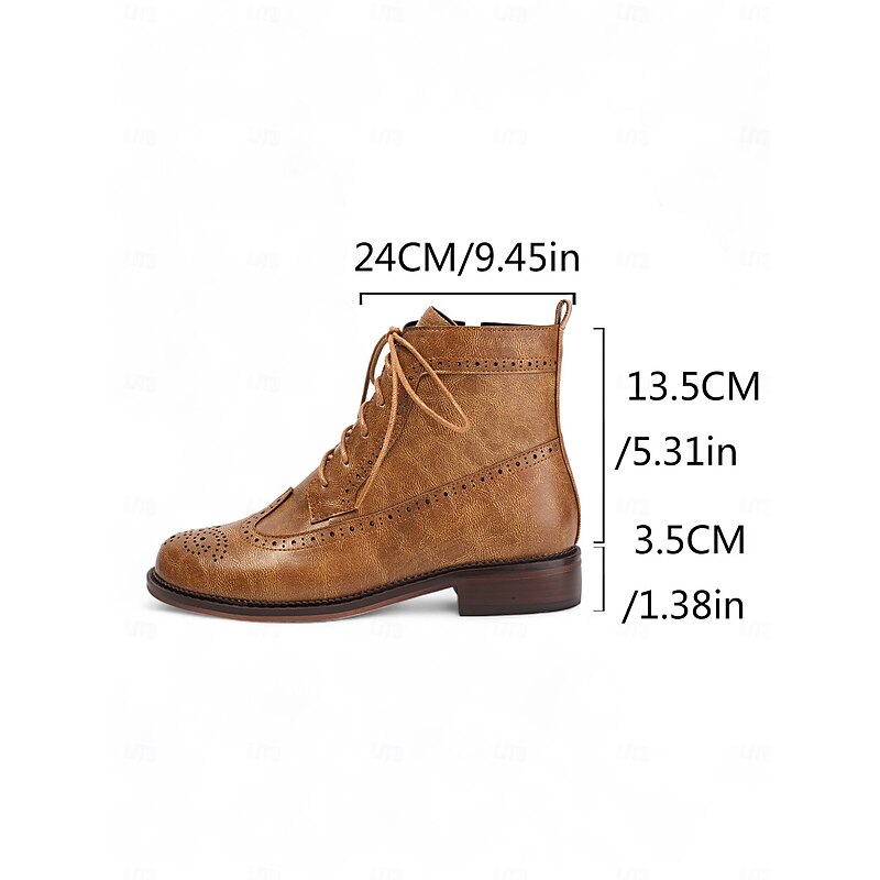 More information about Women's Vintage Oxford Lace-Up Ankle Boots – Brogue Faux Leather Flat Booties for Fall Outfits, Everyday Wear & Retro-Inspired Looks