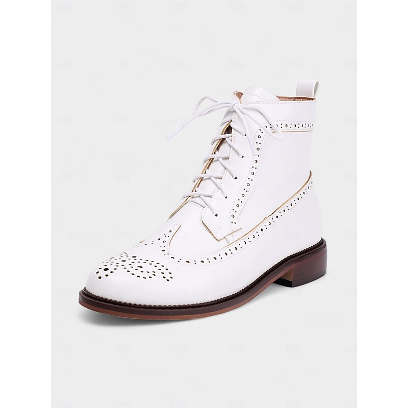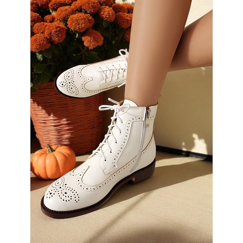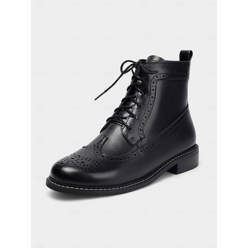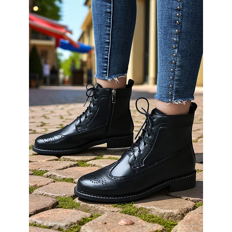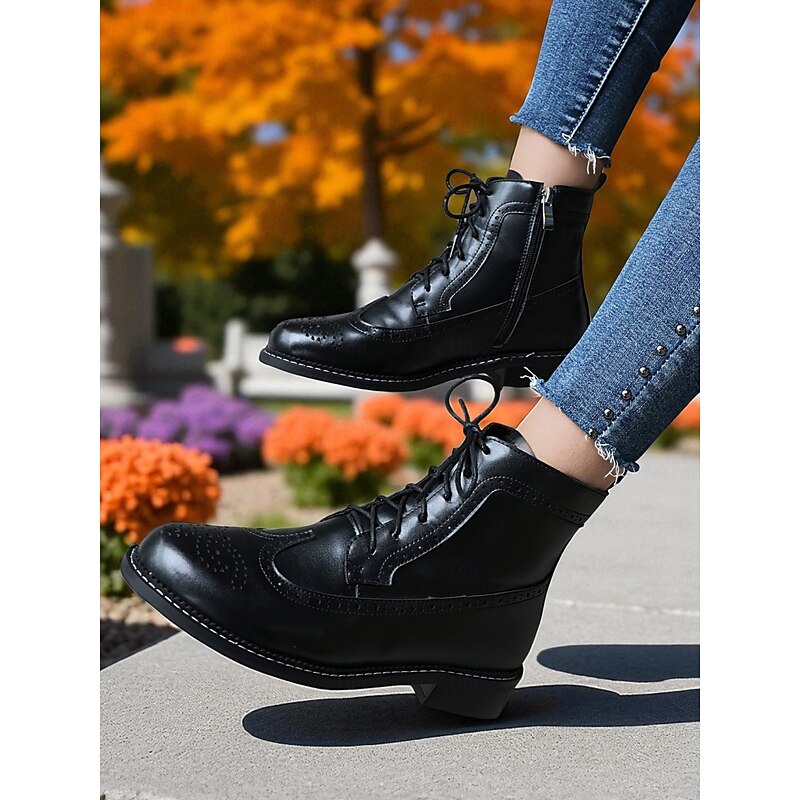 HOT ! Women's Vintage Oxford Lace-Up Ankle Boots – Brogue Faux Leather Flat Booties for Fall Outfits, Everyday Wear & Retro-Inspired Looks