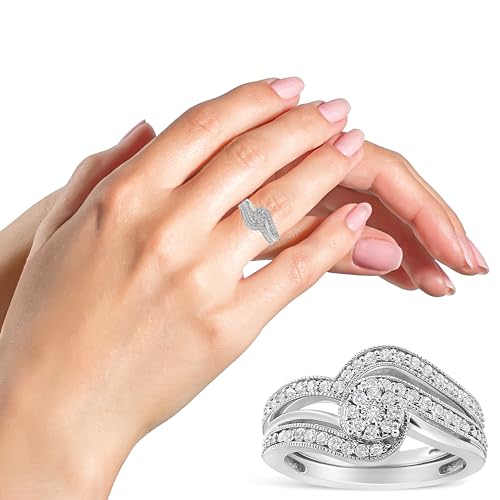 .925 Sterling Silver 1/3 Cttw Multi-Diamond Bypass Vintage-Style Bridal Set Ring and Band (I-J Color, I3 Clarity) - Size 7 2