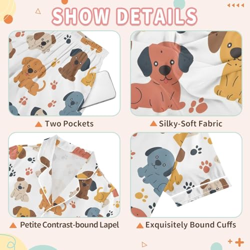 ALAZA Dog Paw Print Puppy Satin Pajamas Set Short Sleeve Button Down Sleepwear Summer Pjs 2 Piece 7