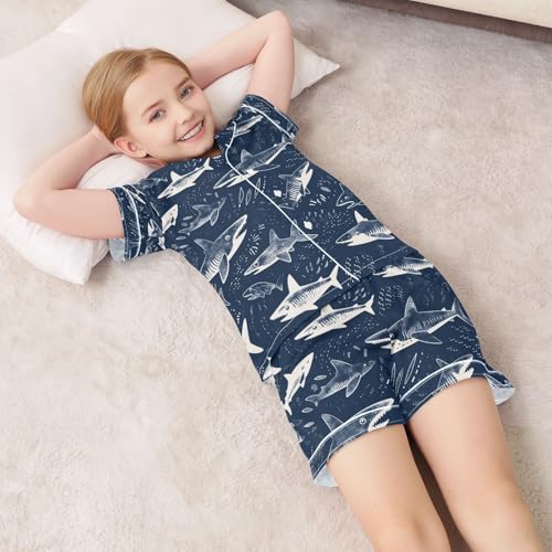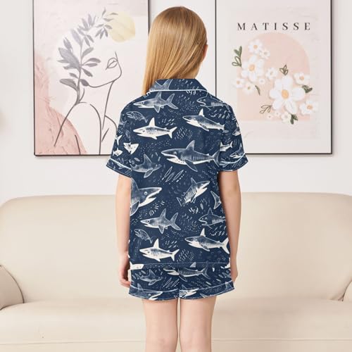senya Sharks Dark Satin Summer Pajama Sets Silk Short Sleeve Button Down Sleepwear 2