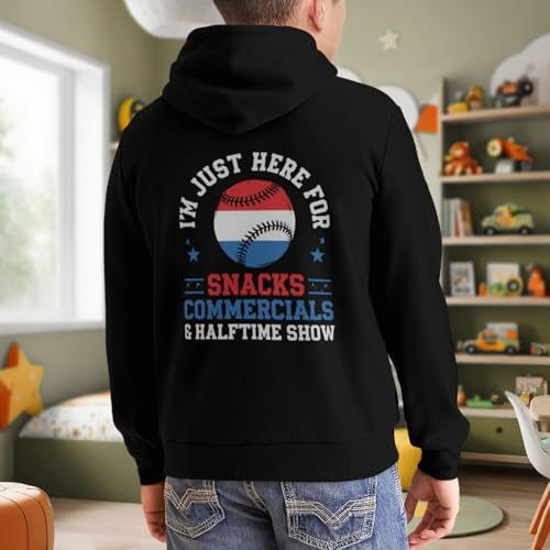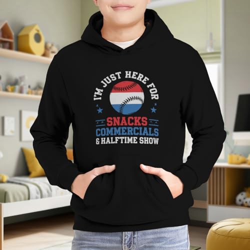 Kids Baseball I'm Just Here for Snacks Commercials Halftime Show Boys Girls Lightweight Kangaroo Pocket Fleece Hoodies 6