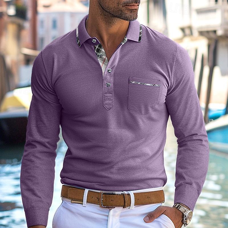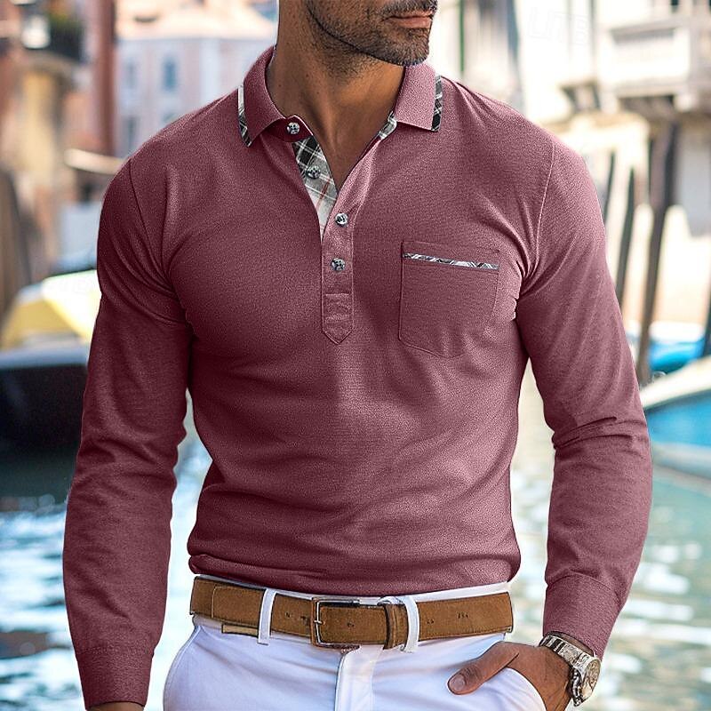 More information about Men's Polo Shirt Golf Shirt Work Casual Lapel Ribbed Polo Collar Short Sleeve Basic Modern Color Block Patchwork Button Spring & Summer Regular Fit Light Yellow Light Blue Lake blue Violet Ruby Red