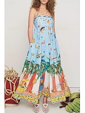 More information about Women's Long Dress Maxi Dress Summer Dress Slip Dress Print Dress Fashion Vacation Holiday Going out Regular Fit Tropical Sleeveless Spaghetti Strap Light Blue Summer