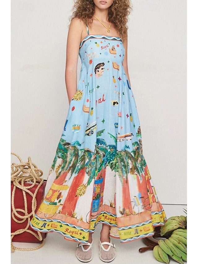 HOT ! Women's Long Dress Maxi Dress Summer Dress Slip Dress Print Dress Fashion Vacation Holiday Going out Regular Fit Tropical Sleeveless Spaghetti Strap Light Blue Summer
