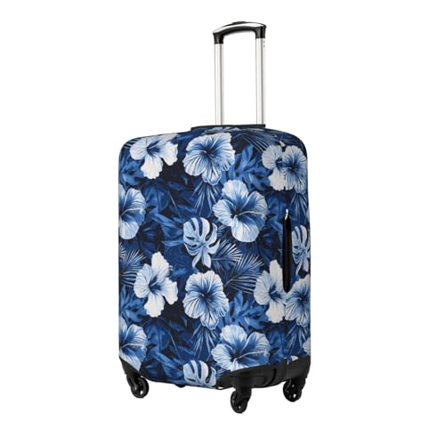 Luggage Cover - Hawaiian Navy Blue Floral Print Travel Suitcase Covers For Luggage, High Elasticity Suit Case Cover Protector Fits 18-32 Inch 1