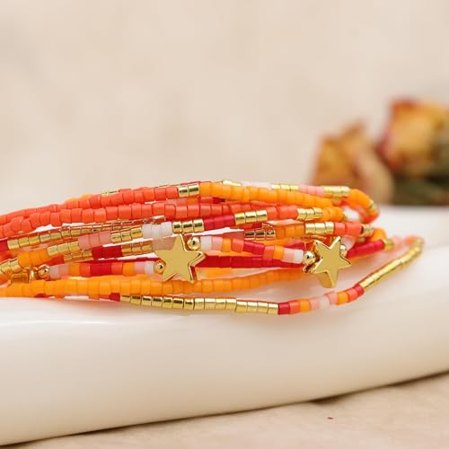 Dainty 12PCS/Set Gold Beaded Star Bracelets Stack for Women,Handmade Boho Colorful Beads Bracelet Fashion Prom Holiday Jewelry Gift Friendship Family 6