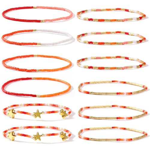 HOT ! Dainty 12PCS/Set Gold Beaded Star Bracelets Stack for Women,Handmade Boho Colorful Beads Bracelet Fashion Prom Holiday Jewelry Gift Friendship Family