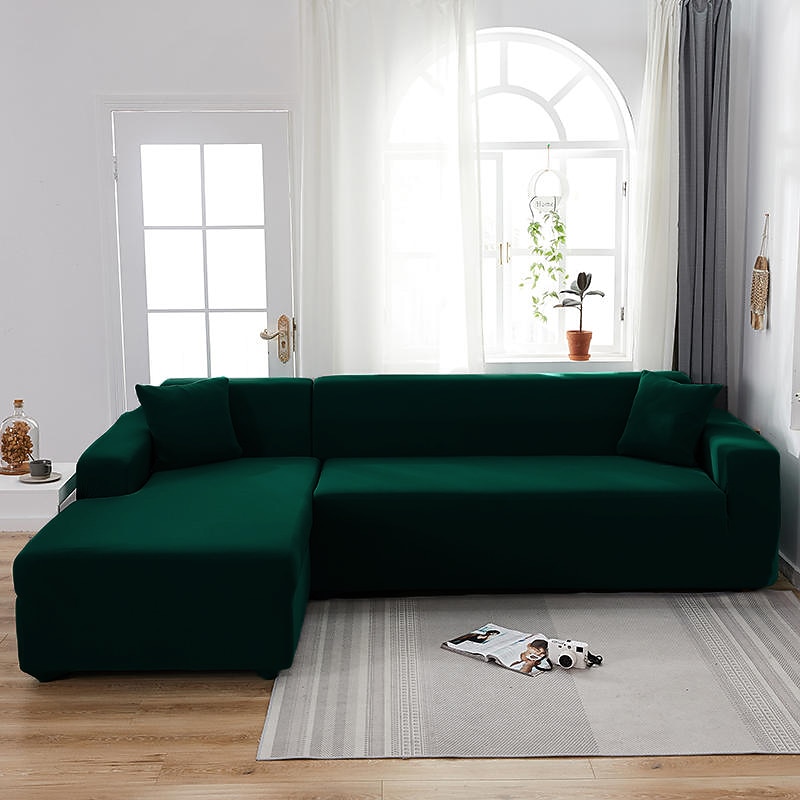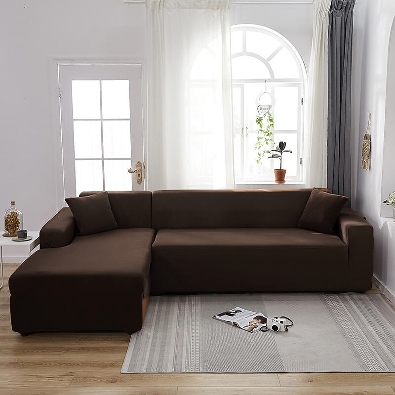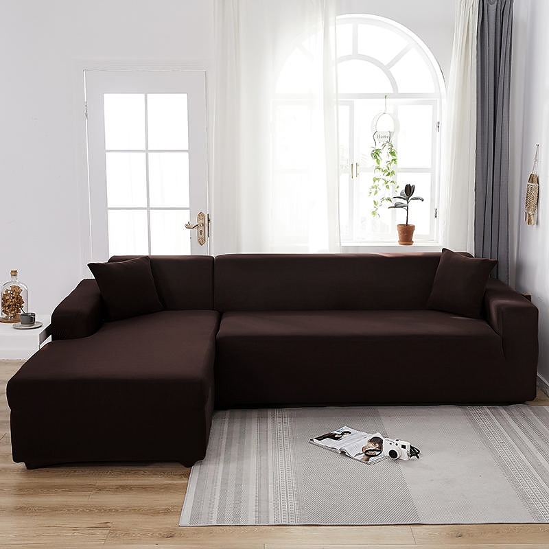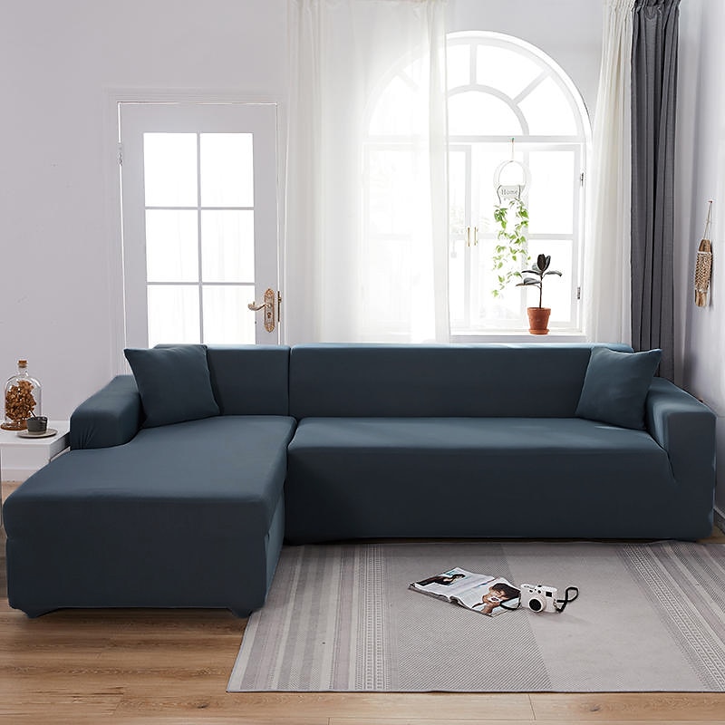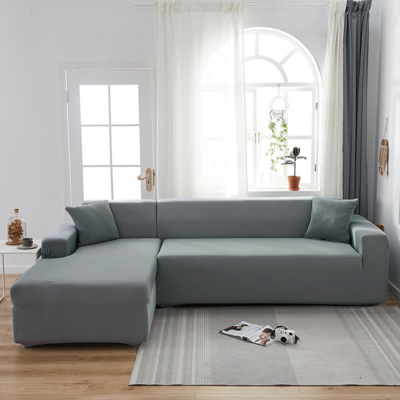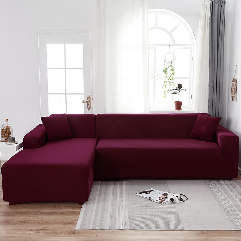 Stretch Sofa Cover Slipcover Burgundy Elastic Sectional Couch Armchair Loveseat 4 or 4 or 3 Seater L Shape Grey Blue Plain Solid Soft Durable Washable 22