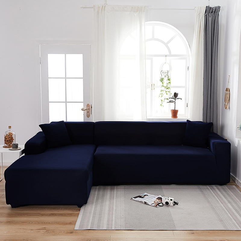 Stretch Sofa Cover Slipcover Burgundy Elastic Sectional Couch Armchair Loveseat 4 or 4 or 3 Seater L Shape Grey Blue Plain Solid Soft Durable Washable 35