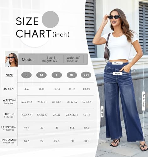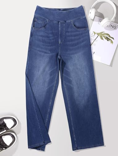 HOT ! Women's Wide Leg Jeans High Waisted Stretchy Denim Pants Elastic Waist Pull On Sweatpant Jeans Trendy Baggy Loose