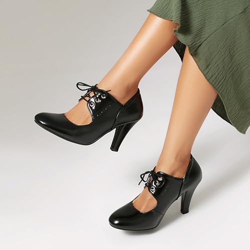 More information about Women's Mary Jane Rockability Oxford Wing Tip Lace Up 1920s Pump Heel Retro Vintage 1940s Round Closed Toe 1950s Dress Shoes