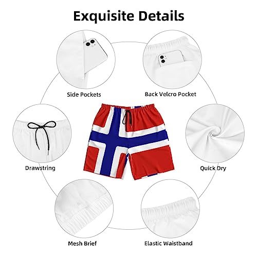 ROHKAO Norwegian Flag Swim Trunks Mens Quick Drying Swimwear Mesh Lining with Pockets Swimwear 5
