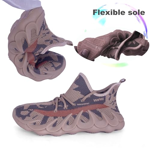 Parisex Kids Outdoor Running Shoes, Boys Non-Slip Mesh Lightweight Walking Sneakers, Girls Athletic Sports Tennis Shoes 5