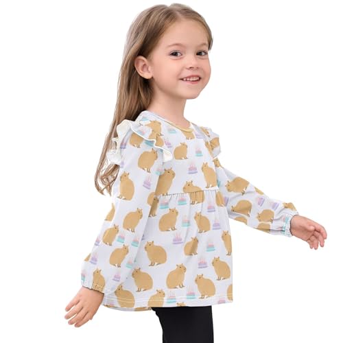 Capybara Birthday Cake Q Girls Shirts Cotton Long Sleeve Ruffle Toddler Tee Tops 4