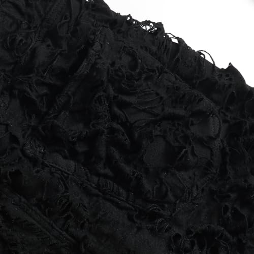 More information about Men’s Black Stacked Jean Composite Fabric Ripped Jeans Destroyed Straight Denim Pants Hip Hop Trouser Streetwear