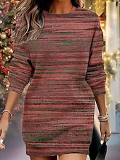 More information about Women's Mini Dress Shift Dress Vacation Casual Birthday Date Regular Fit Graphic Stripe Long Sleeve Crew Neck Red Blue Green Khaki Fall Winter