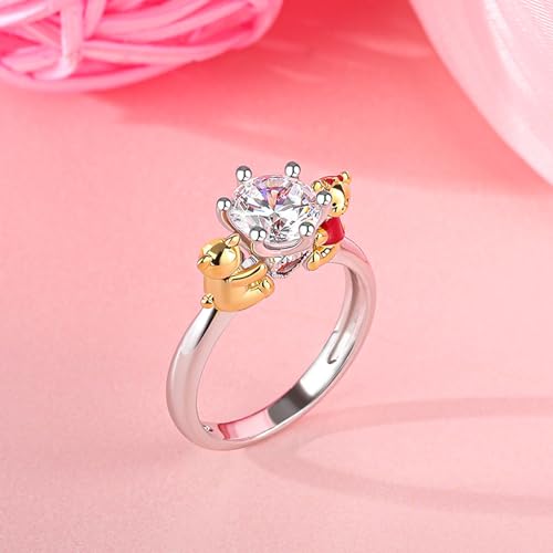 HOT ! Jeulia Hug Me Animal Round Cut Sterling Silver Ring for Women Couples Engagement Wedding Anniversary Christmas Mother's Day Diamond Band with Jewelry Box