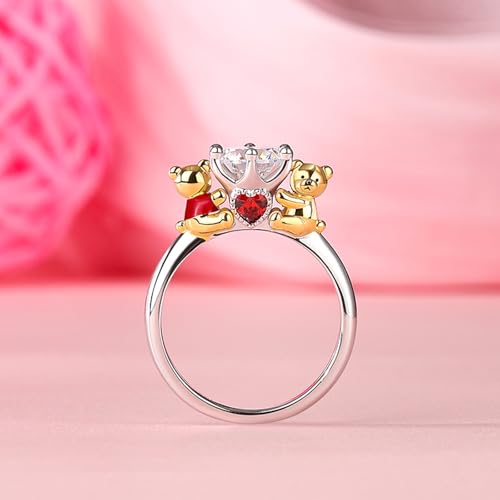 Jeulia Hug Me Animal Round Cut Sterling Silver Ring for Women Couples Engagement Wedding Anniversary Christmas Mother's Day Diamond Band with Jewelry Box 6