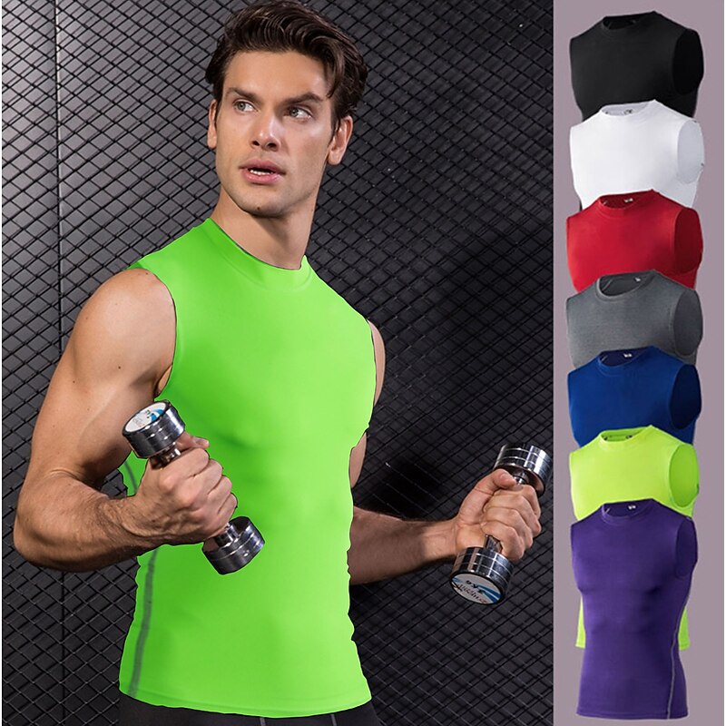 More information about Men's Gym Tank Top Compression Tank Top Sleeveless Base Layer Athletic Fall Solid Colored Quick Dry Sweat wicking Gym Workout Basketball Running Sportswear Activewear Neon Green Black White