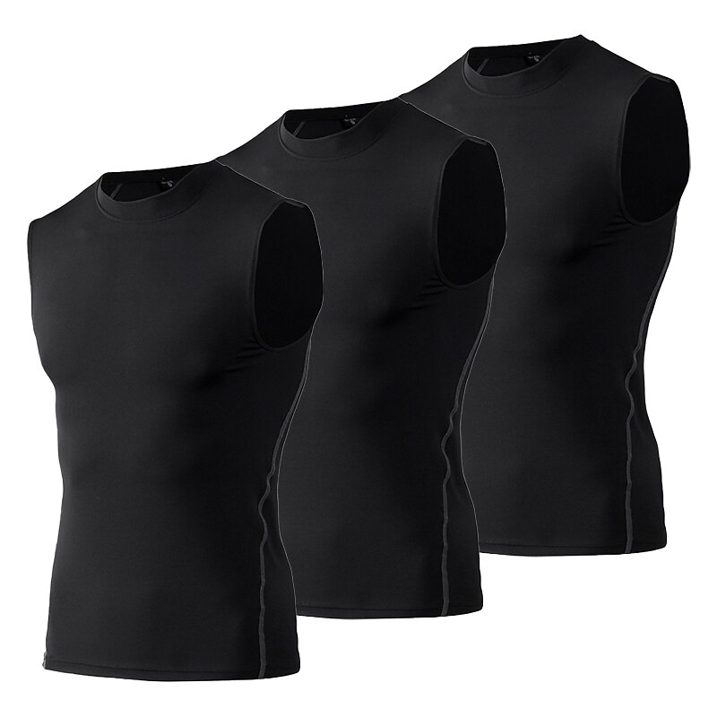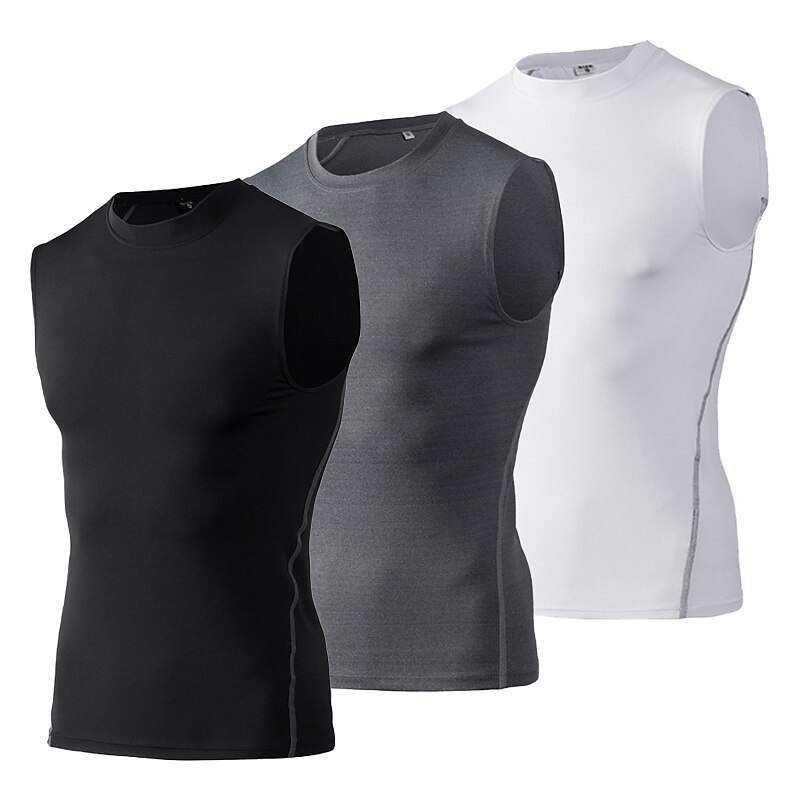 Men's Gym Tank Top Compression Tank Top Sleeveless Base Layer Athletic Fall Solid Colored Quick Dry Sweat wicking Gym Workout Basketball Running Sportswear Activewear Neon Green Black White 3