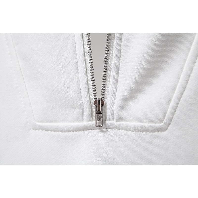 Men's Pullover Black White Standing Collar Half Zip Plain Pocket Work Sports & Outdoor Casual Active Vintage Cool Spring Fall Clothing Apparel Hoodies Sweatshirts 13