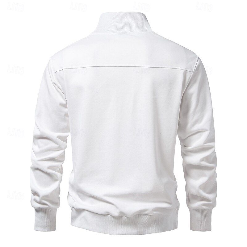 Highlights [Fabric] : Crafted from a soft cotton blend, this men's pullover provides ultimate comfort and warmth. The fabric is perfect for transitioning between seasons, offering both breathability and durability. [Fit] : Designed with a loose fit, this pullover accommodates various body types and ensures ease of movement. The classic fit makes it versatile for layering or wearing on its own. [Design Highlights] : Featuring a standing collar and a practical half-zip, this pullover combines functionality with style. The addition of ribbed cuffs and hem enhances the overall look, while the plain pattern and pocket design add subtle sophistication to the outfit. [Occasions] : Ideal for a range of activities, this pullover effortlessly transitions from sports and outdoor adventures to daily urban life and casual outings. It's a versatile piece suitable for work or play during the spring, fall, and winter months. [Size Range] : Available in sizes M, L, XL, 2XL, and 3XL, this pullover offers a fit for every body, catering to different preferences and ensuring a comfortable wearing experience.