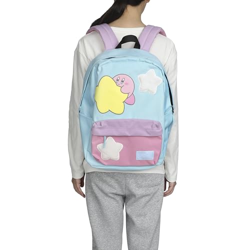 CUSTOM DESIGN: The Kirby backpack has been custom-designed to feature Kirby frolicking amongst the stars—complete with appliques and puff print details!LOTS OF POCKETS: Two side pockets provide the ideal spots for water bottles, while a zippered front pocket keeps smaller valuables within easy reach.LAPTOP SLEEVE: Inside the backpack's spacious main compartment, a zippered laptop sleeve promises to keep your computer safe and secure.OFFICIAL KIRBY MERCHANDISE: As an officially licensed product, this backpack ensures you're getting an authentic piece of Kirby merchandise.CARE INSTRUCTIONS: To keep this backpack looking great, simply wipe it clean with a damp cloth. THIS ITEM IS NOT INTENDED FOR USE BELOW 12 YEARS OF AGE Perfect for everyday use. top-grade materials and excellent craftsmanship ensure long-lasting durability.
