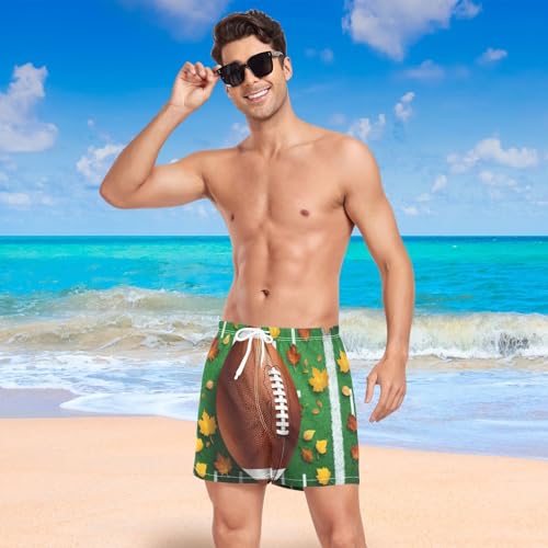 Mens Swim Trunks with Liner, Thanksgiving Football Leaf Cool Quick Dry Beach Swim Shorts, Swimwear Bathing Suits S 1