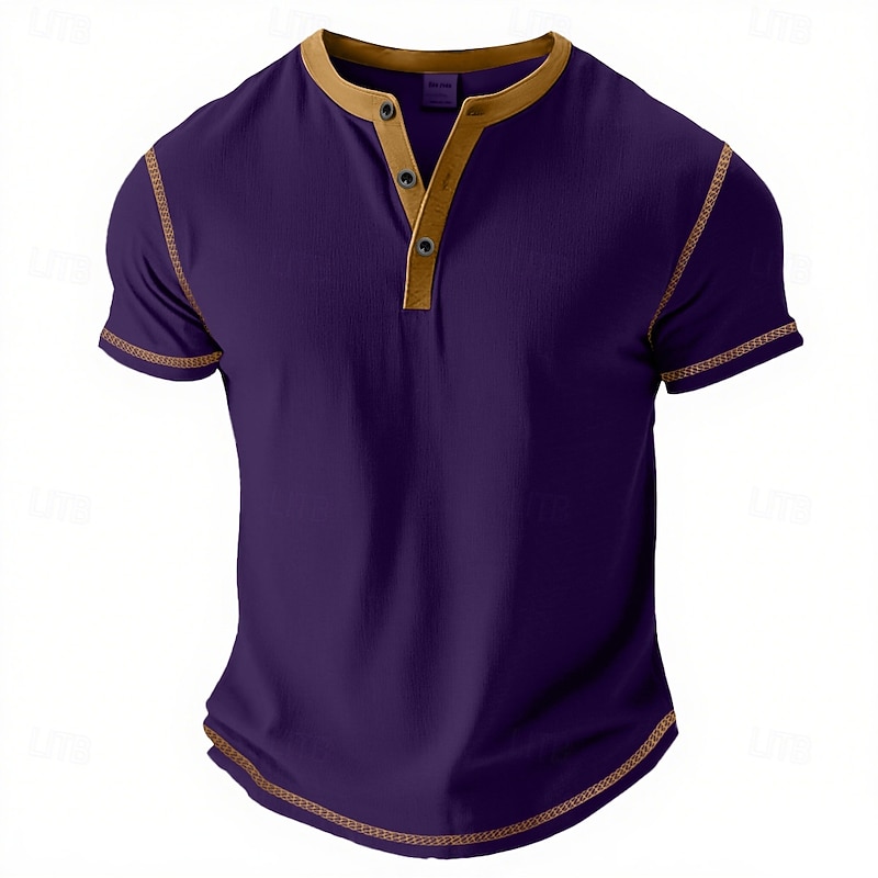 More information about Men's Henley Shirt Tee Top Cotton Blend T-Shirt Short Sleeve Plain Fashion Designer Basic Contrast Lace Henley Vacation Street Casual Summer All Seasons Purple Navy Blue Royal Blue Henley T-Shirt